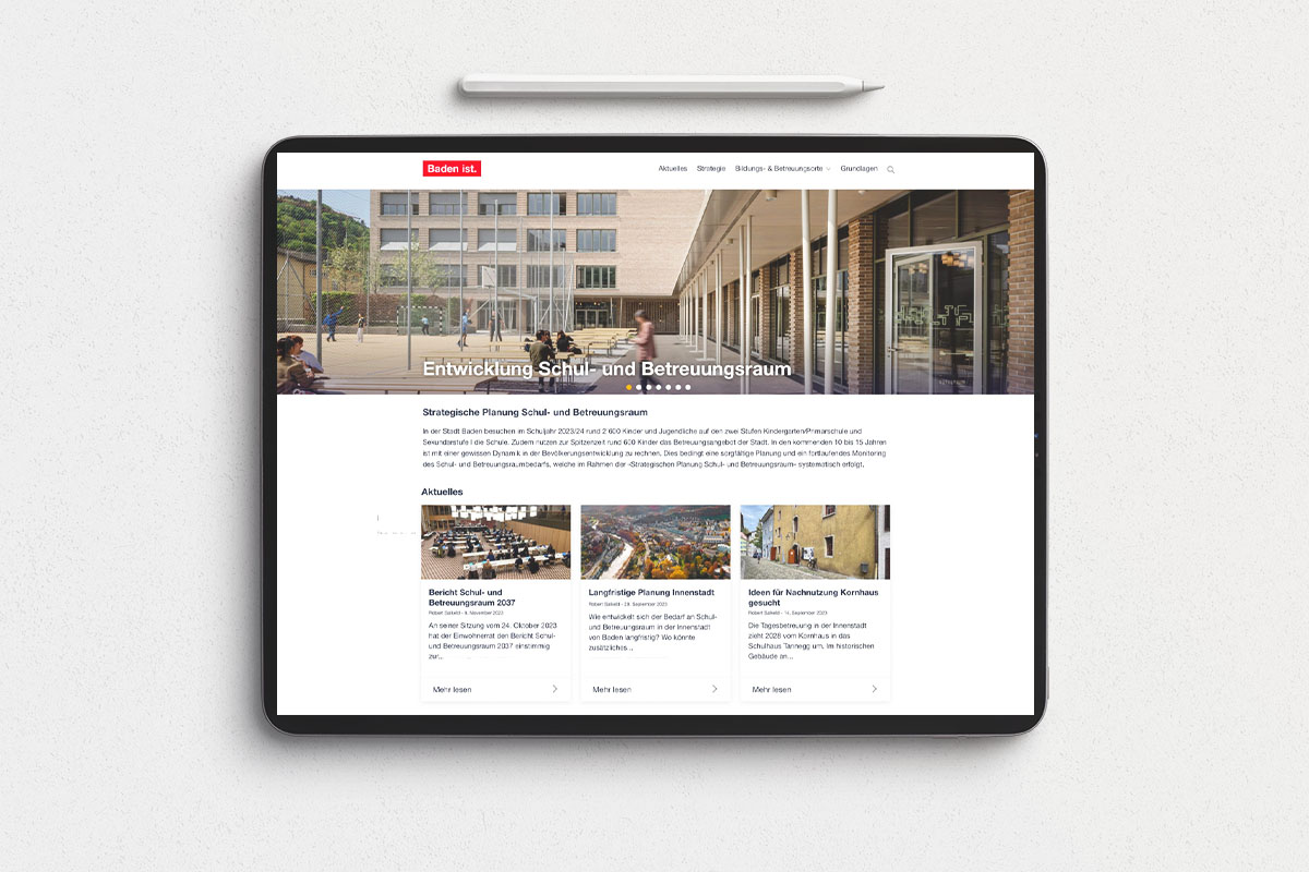 Darüber hinaus erleichtert die zentrale Dashboard-Verwaltung den Mitarbeitern und Fachleuten der Stadt Baden das Publizieren von Beiträgen. Durch definierte Benutzerrollen und vordefinierte Inhaltselemente wird eine einfache und konsistente Content-Erstellung gewährleistet.