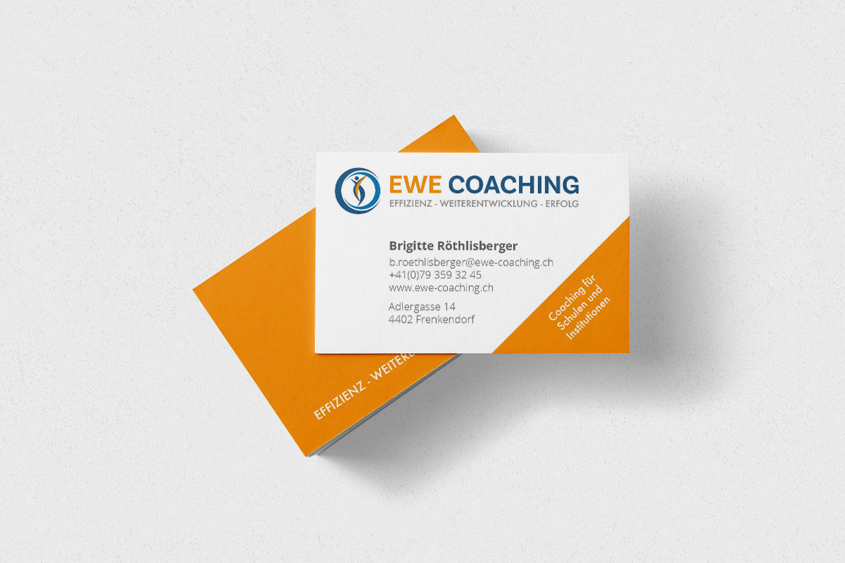 Das Corporate Design von EWE COACHING zeichnet sich durch ein zeitloses und robustes Logo aus, das Beständigkeit verspricht. Das Logo symbolisiert mit dem Kreis den Zyklus und die Vollendung der Entwicklung, was für ein ganzheitliches Coaching steht sowie Dynamik und das positive Lebensgefühl, das Menschen durch Coaching erfahren können.
