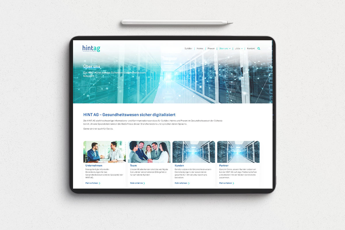 Als führender Anbieter von ICT-Lösungen für das Gesundheitswesen, entwickelt HINT AG massgeschneiderte Digitalisierungsstrategien und stellt innovative Technologielösungen bereit, um die Prozesse im Gesundheitswesen zu optimieren und dadurch die Effizienz und Patientenversorgung in den jeweiligen Institutionen zu verbessern. Die bestehende Website war jedoch veraltet, unübersichtlich und nicht benutzerfreundlich. Die Besucher hatten Schwierigkeiten, die gewünschten Informationen zu finden, und die Website spiegelte nicht das innovative Image des Unternehmens wider.