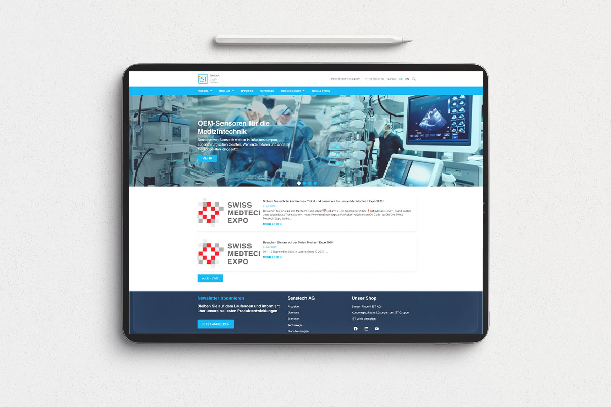 Für die Senstech AG haben wir einen modernen, mehrsprachigen Webauftritt gestaltet und umgesetzt, der ihre Expertise in Dünnsichtsensorik und kundenspezifischen OEM-Lösungen überzeugend präsentiert. Besonderer Fokus lag auf responsivem Design, einer klar strukturierten Produktdarstellung und flexibler Inhaltsverwaltung via CMS. Die neue Seite verbindet technisches Know-how mit Nutzerfreundlichkeit.