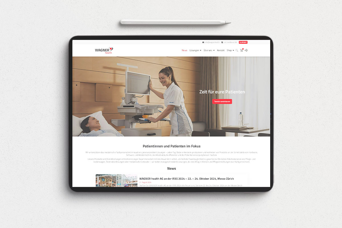 Im Zuge einer Neuausrichtung mit Fokus auf das Gesundheitswesen und dem Rebranding zu WAGNER health AG durften wir den Relaunch der Website realisieren. Unser Ziel war es, eine klar strukturierte und benutzerfreundliche Plattform zu schaffen, die den Ansprüchen der modernen Marke gerecht wird und das zukünftige Wachstum und die strategische Weiterentwicklung der WAGNER health AG optimal unterstützt.
