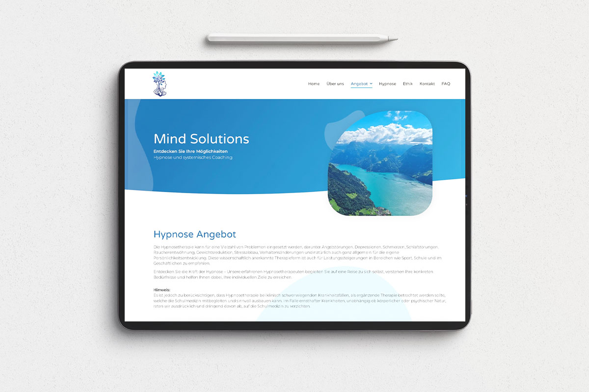Mit Mind Solutions die Möglichkeiten von Hypnose und systemischen Coaching entdecken. Diese wissenschaftlich anerkannte Therapieform kann für eine Vielzahl von Problemen wie Schmerzen, Schlafstörungen, Raucherentwöhnung, Gewichtsreduktion oder Leistungssteigerungen im privaten und geschäftlichen Bereichen sowie Angststörungen und natürlich auch ganz allgemein für die eigene Persönlichkeitsentwicklung eingesetzt werden.